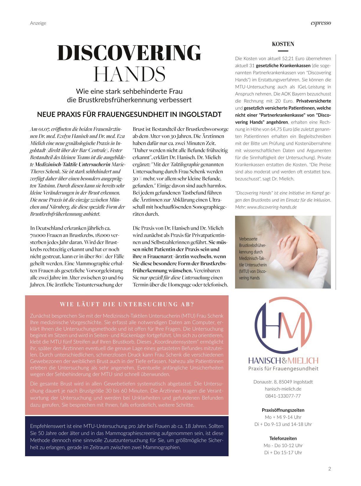 Seit Februar 2023 bieten wir zudem eine Anleitung zur taktilen Selbstuntersuchung der Brust an (ATS) an. Frau Linck ist blind und hat daher einen ausgeprägten Tastsinn, den sie intensiv geschult hat.